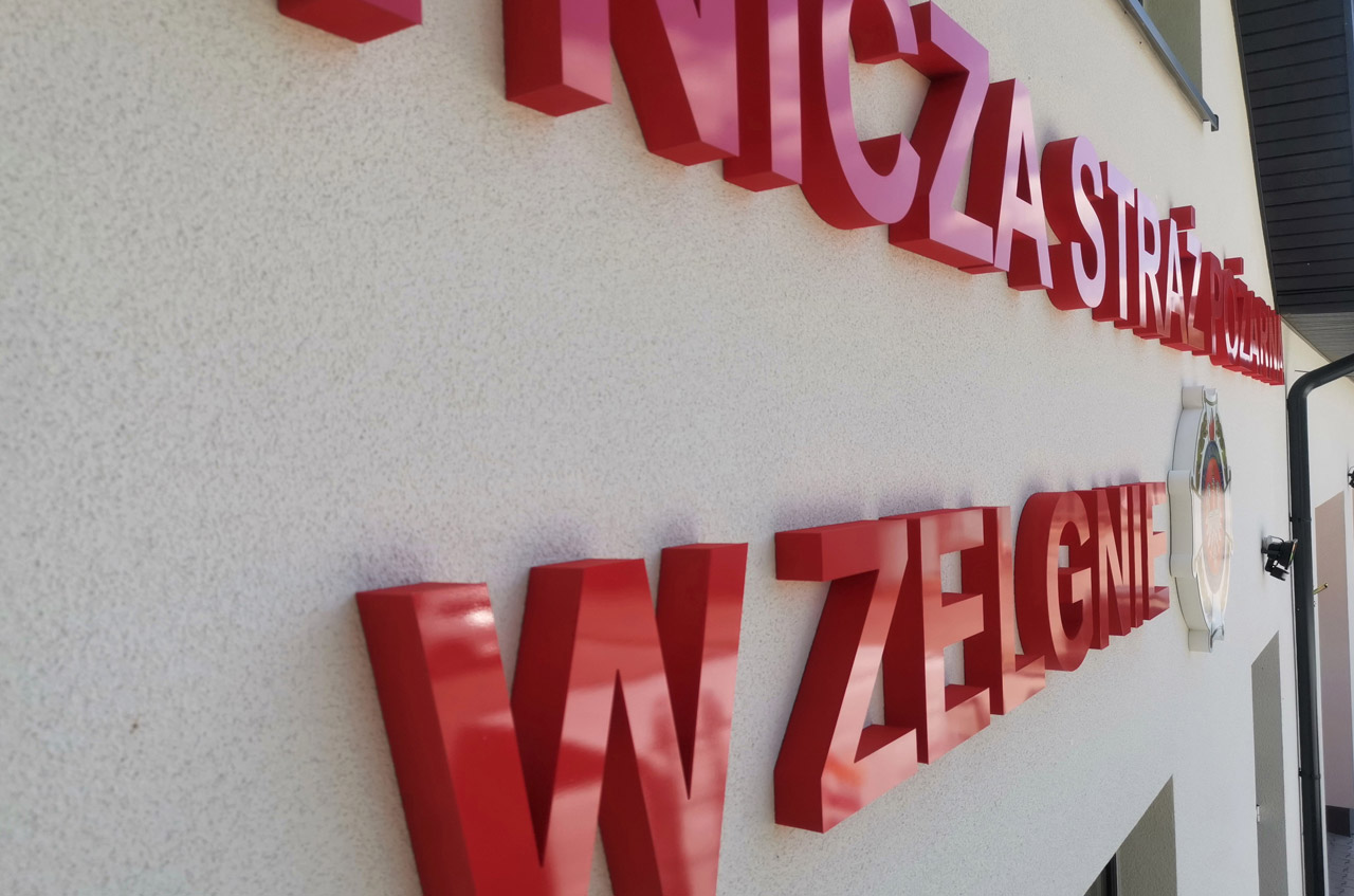 Wykonanie oraz montaż liter ze styroduru z dodatkowym licem z czeronej plexi.