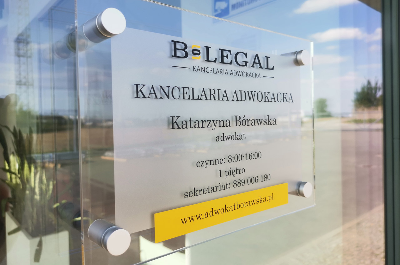 Oklejona tabliczka plexi zamontowana na dystansach.