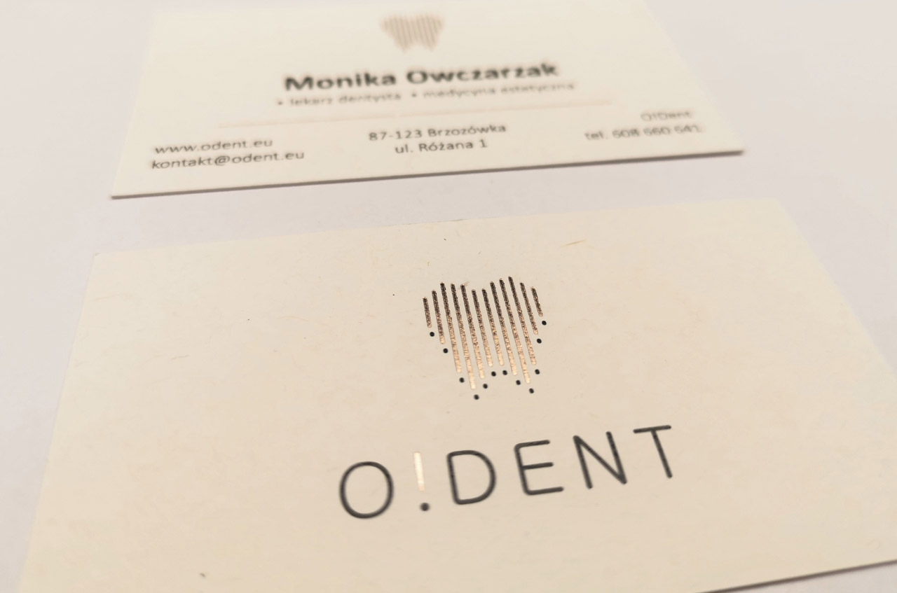Druk wizytówek dodatkowo uszlachetniony metodą hot-stampingu.