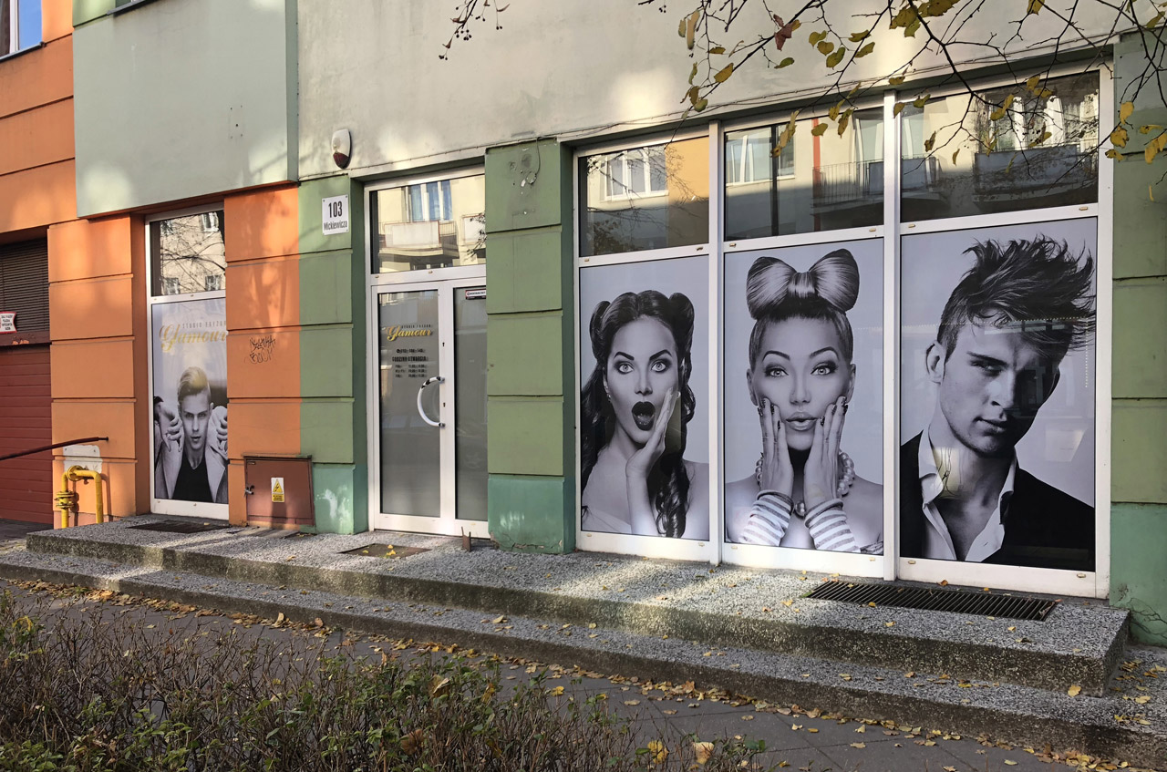 Projekt, druk oraz montaż folii OWV na witrynie.