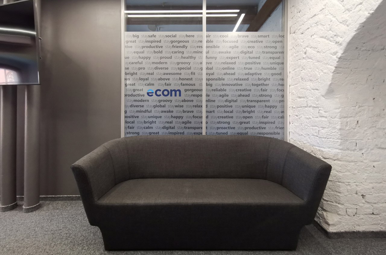 Druk na folii oraz oklejenie szyb w biurze.