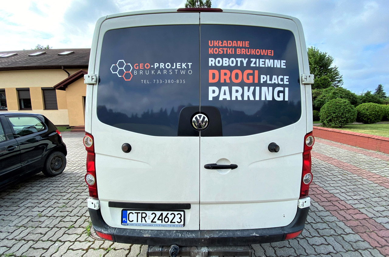 Projekt, druk na folli z laminatem oraz montaż na aucie.