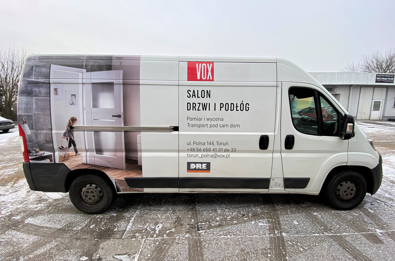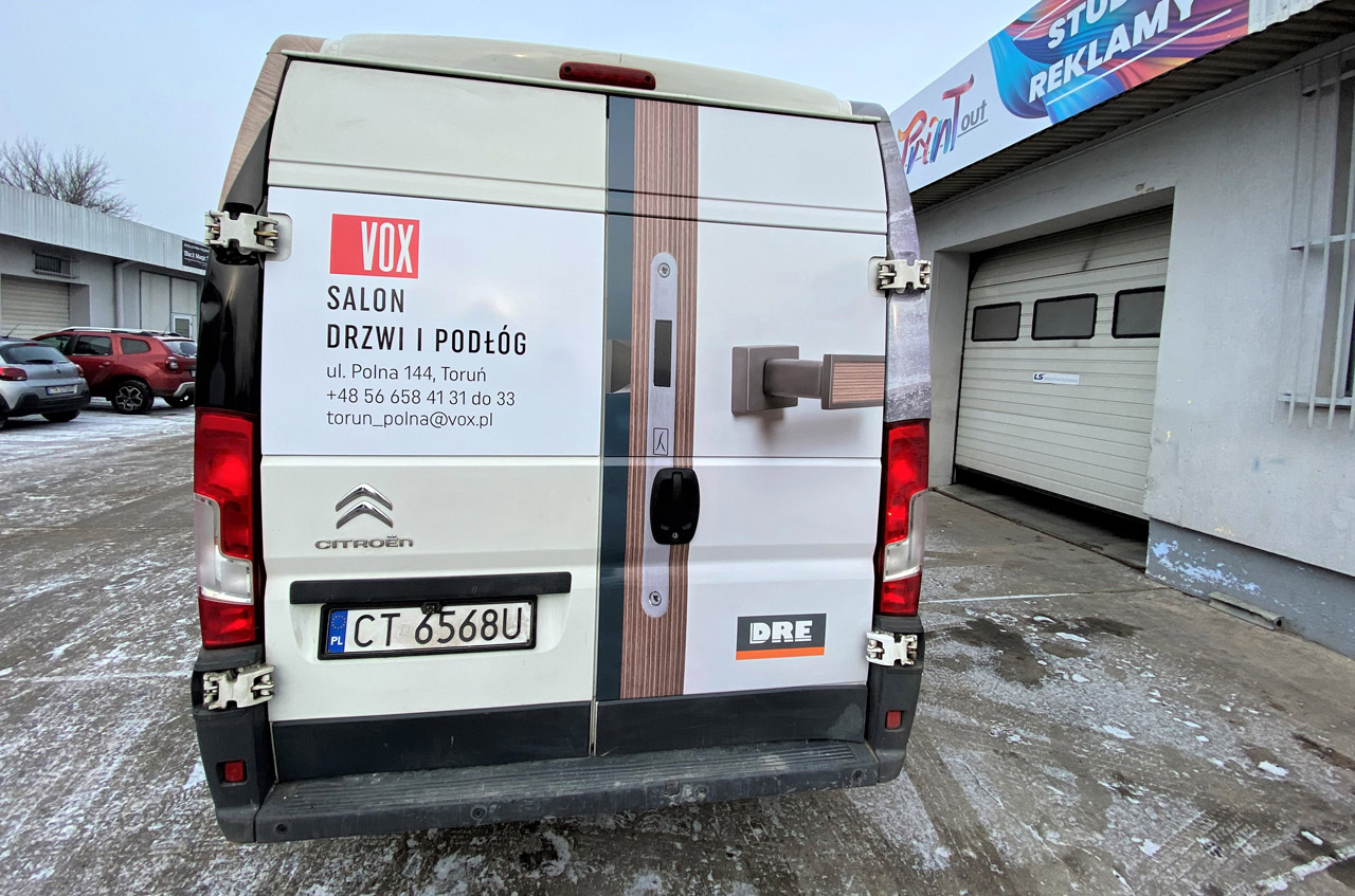 Druk wysokojakościowy na folii wylewnej z laminatem UV wraz z montażem na aucie.