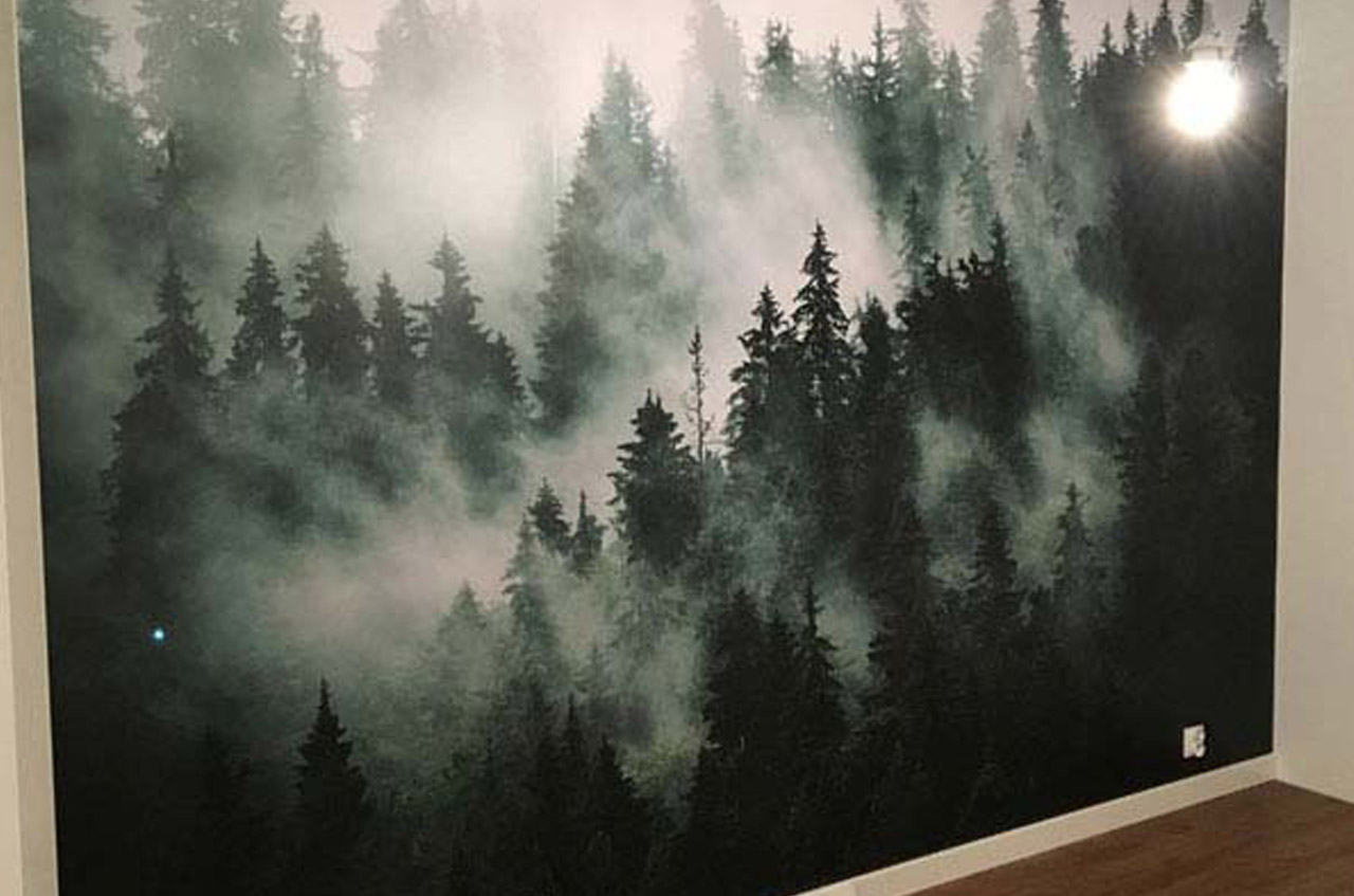 Druk oraz montaż fotatapety na papierze aktywowanym wodą.