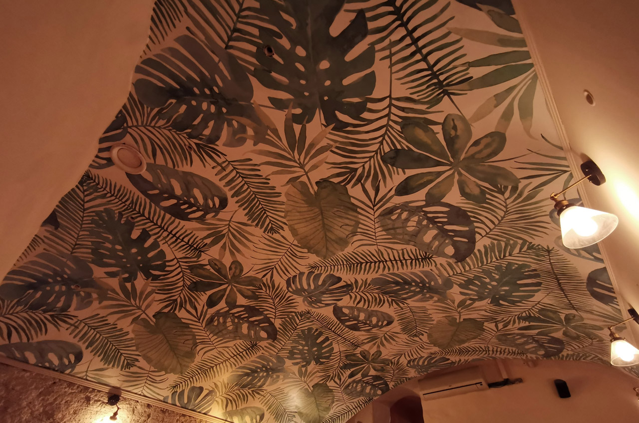 Druk oraz montaż fototapety na suficie.