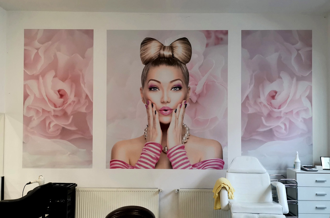 Druk oraz montaż fototapety na papierze z klejem aktywowanym wodą.