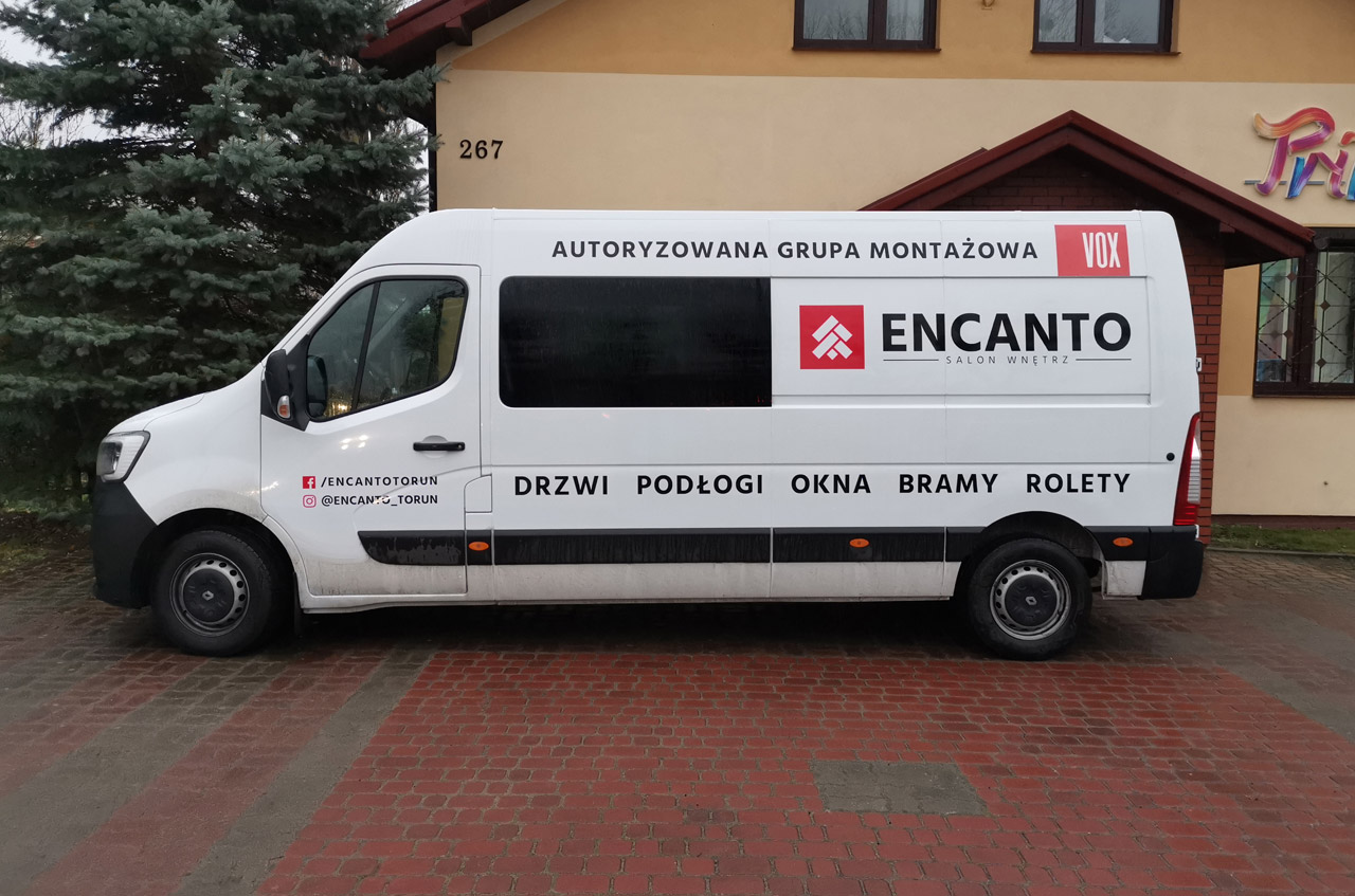 Projekt, druk oraz montaż folii wylewanej na aucie.
