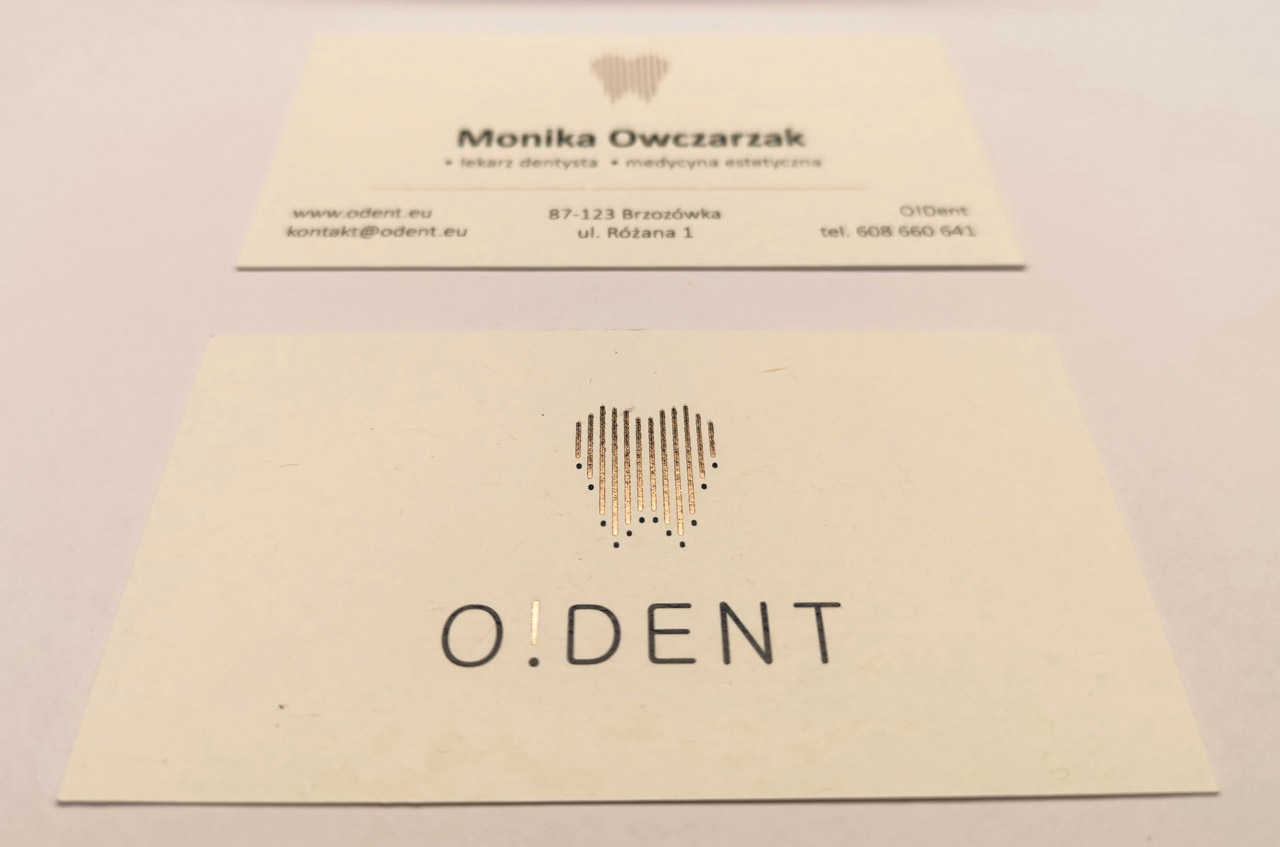 Druk wizytówek dodatkowo uszlachetniony metodą hot-stampingu.